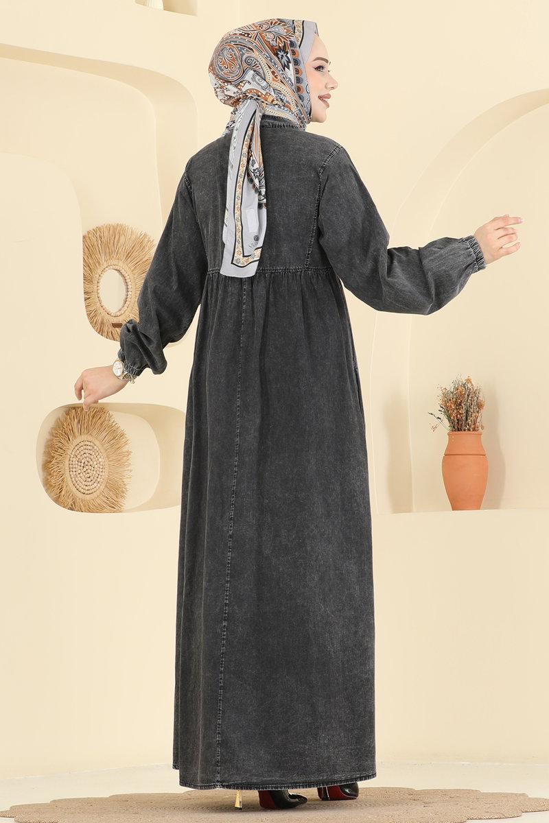 Püskül Detay Kot Elbise 105ZNE1011-MS Siyah Kot