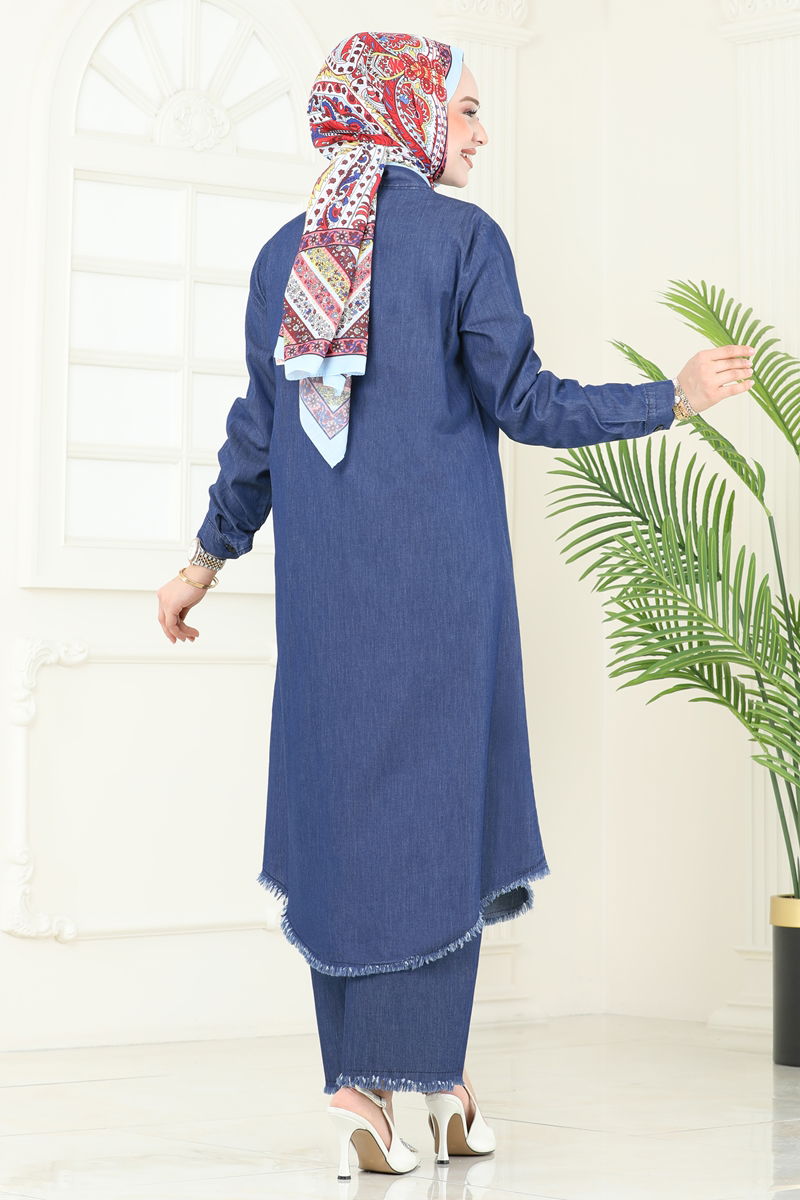 Püsküllü Tensel Kot Takım 328MSA980-MS Koyu Kot