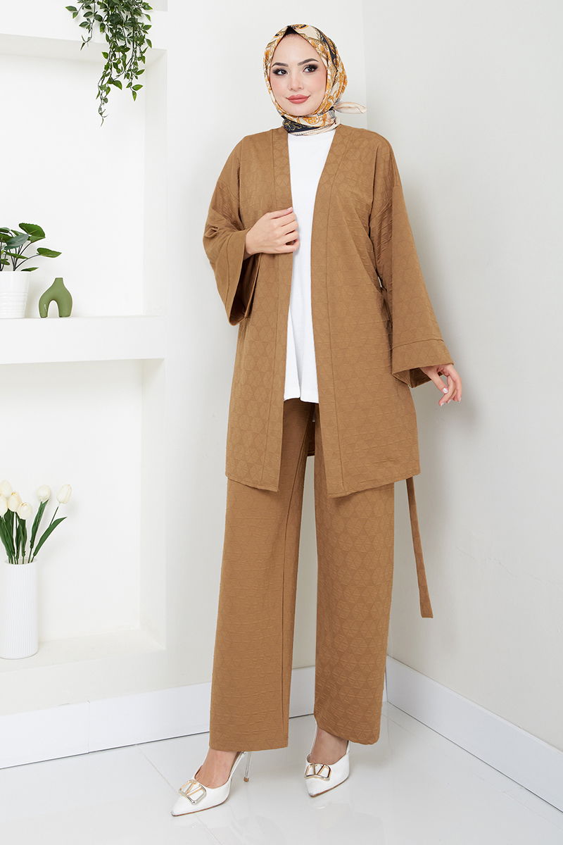 Kapitone Detaylı Üçlü Takım 1814LNA1042-M Latte