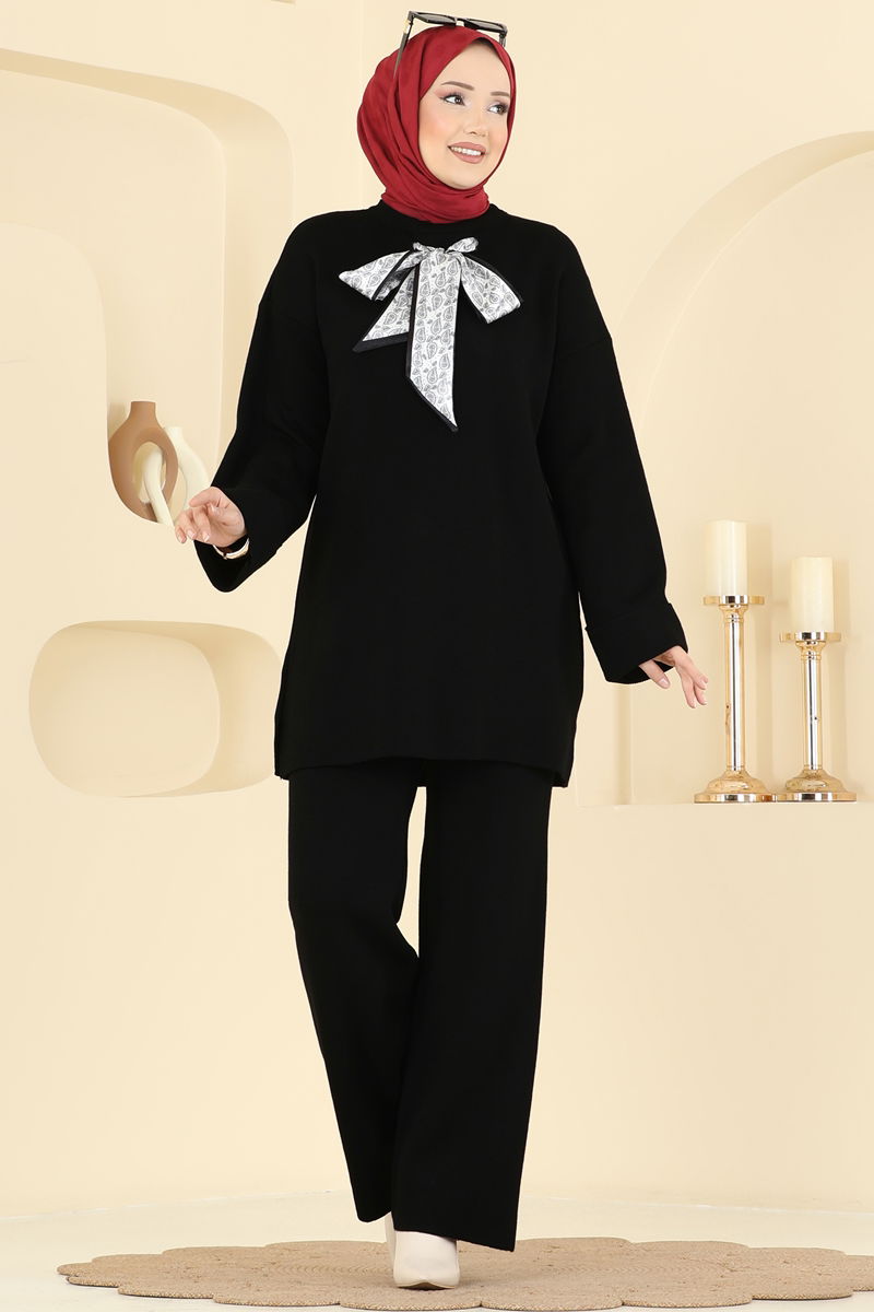 Şal Detaylı Triko Takım 2771AYD574-MS Siyah