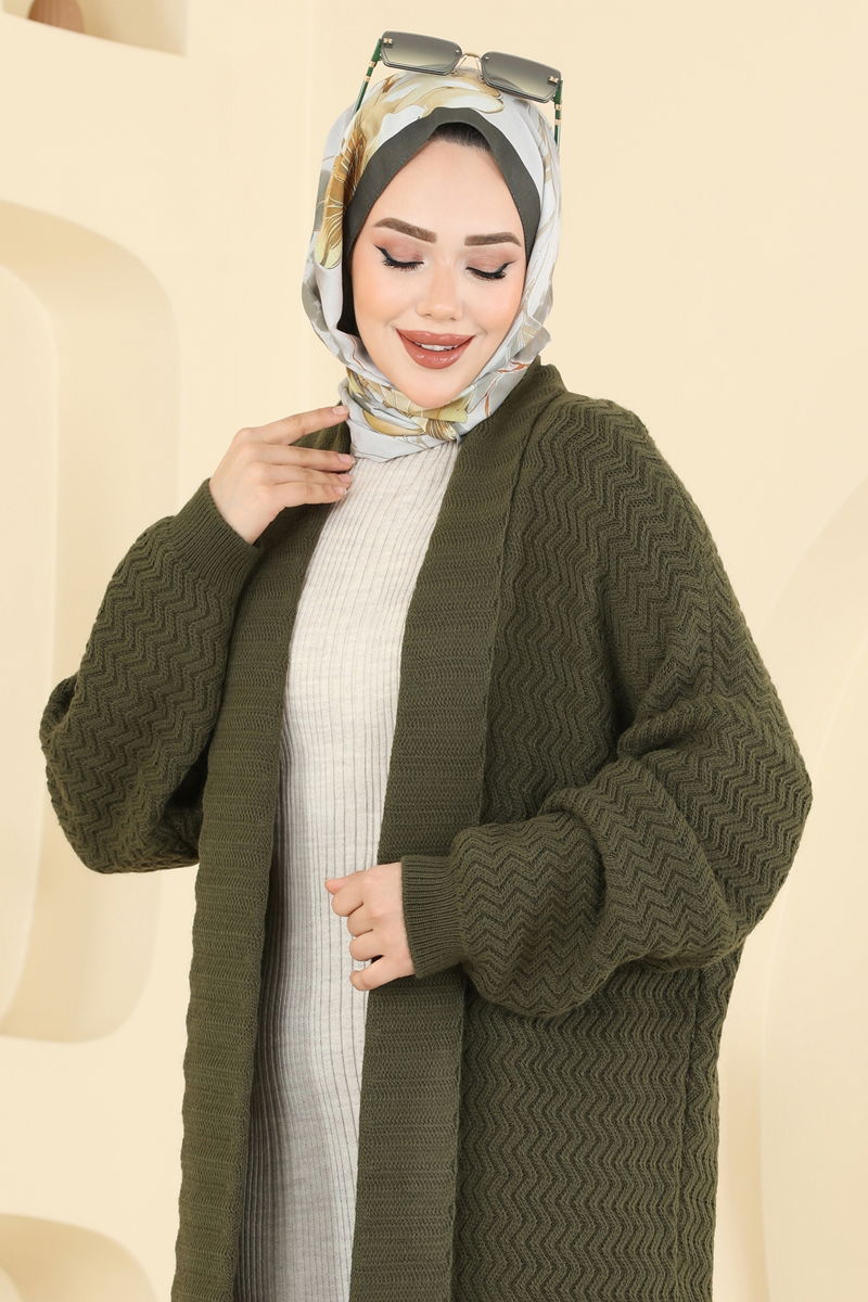 Şal Yaka Uzun Hırka 4470BRZ597-MS Haki