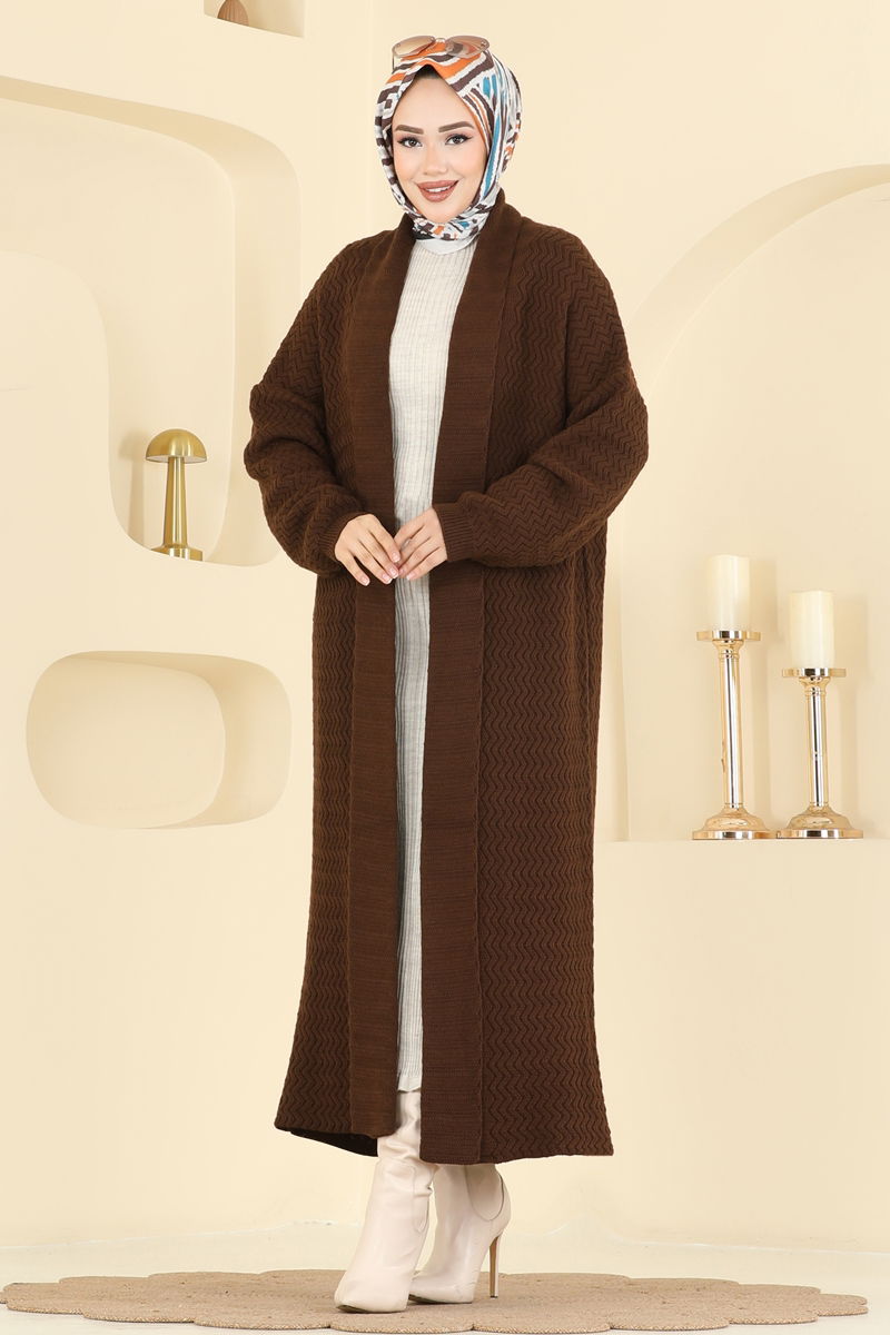 Şal Yaka Uzun Hırka 4470BRZ597-MS Kahve