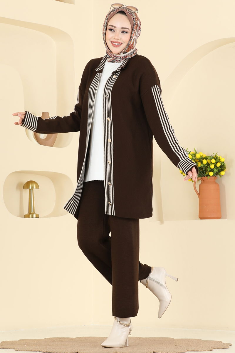 Şerit Detaylı Triko Takım 0690KLB1050-MS Kahve