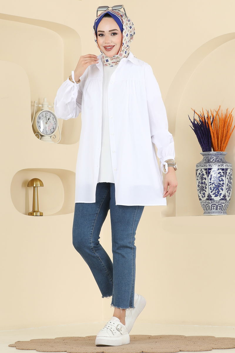 Product Feature : It is a new season hijab fashion product. The product has a Shirt collar. The product has From the front buttons. Unlined. The cuff is elasticized and fastened. There may be a tonal difference in the product due to concept photo shoots.
