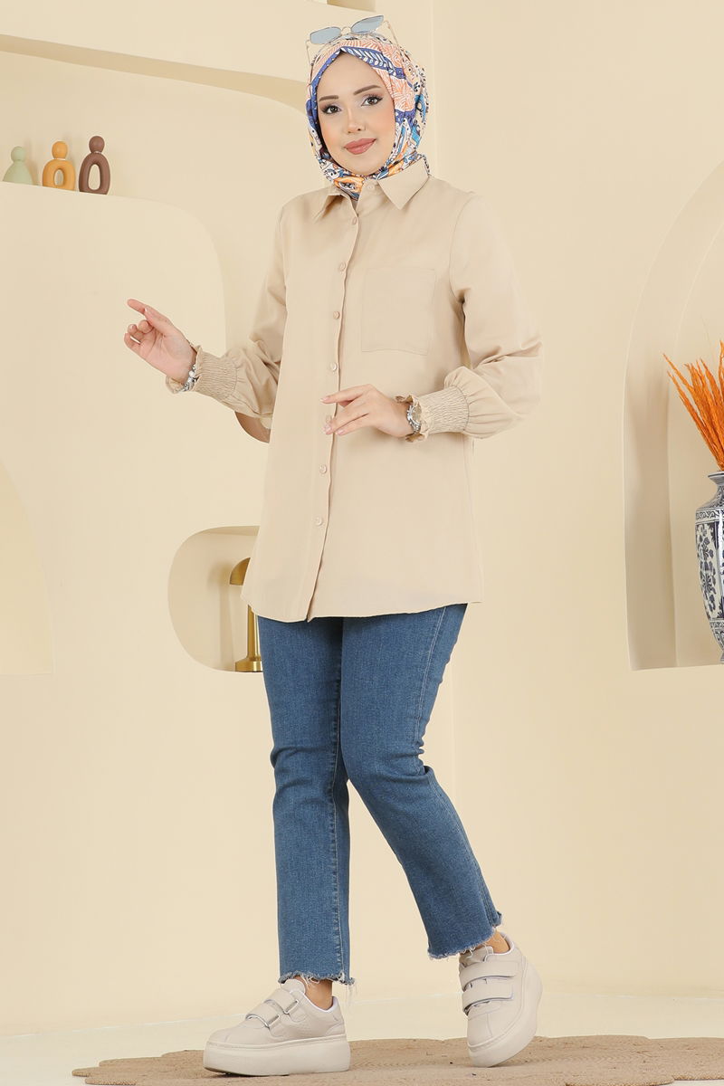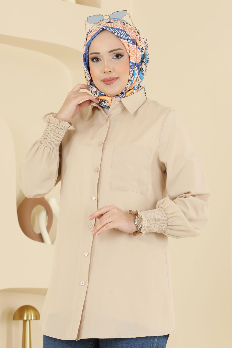 Product Feature : It is a new season hijab fashion product. The product has a Shirt collar. The product has From the front buttons. Unlined. The chest pocket is active. The cuff is rubberized. There may be a tonal difference in the product due to concept photo shoots.