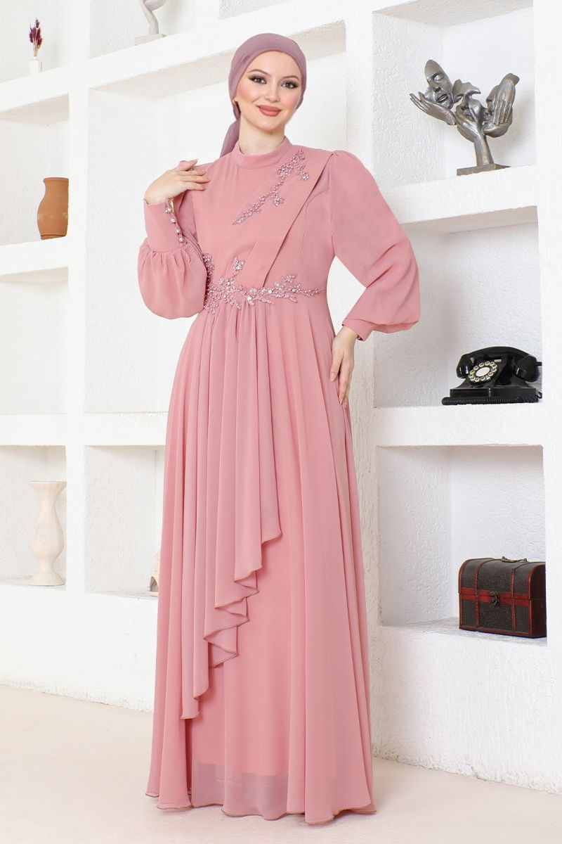 Şifon Abiye ABY5652 Gül Kurusu