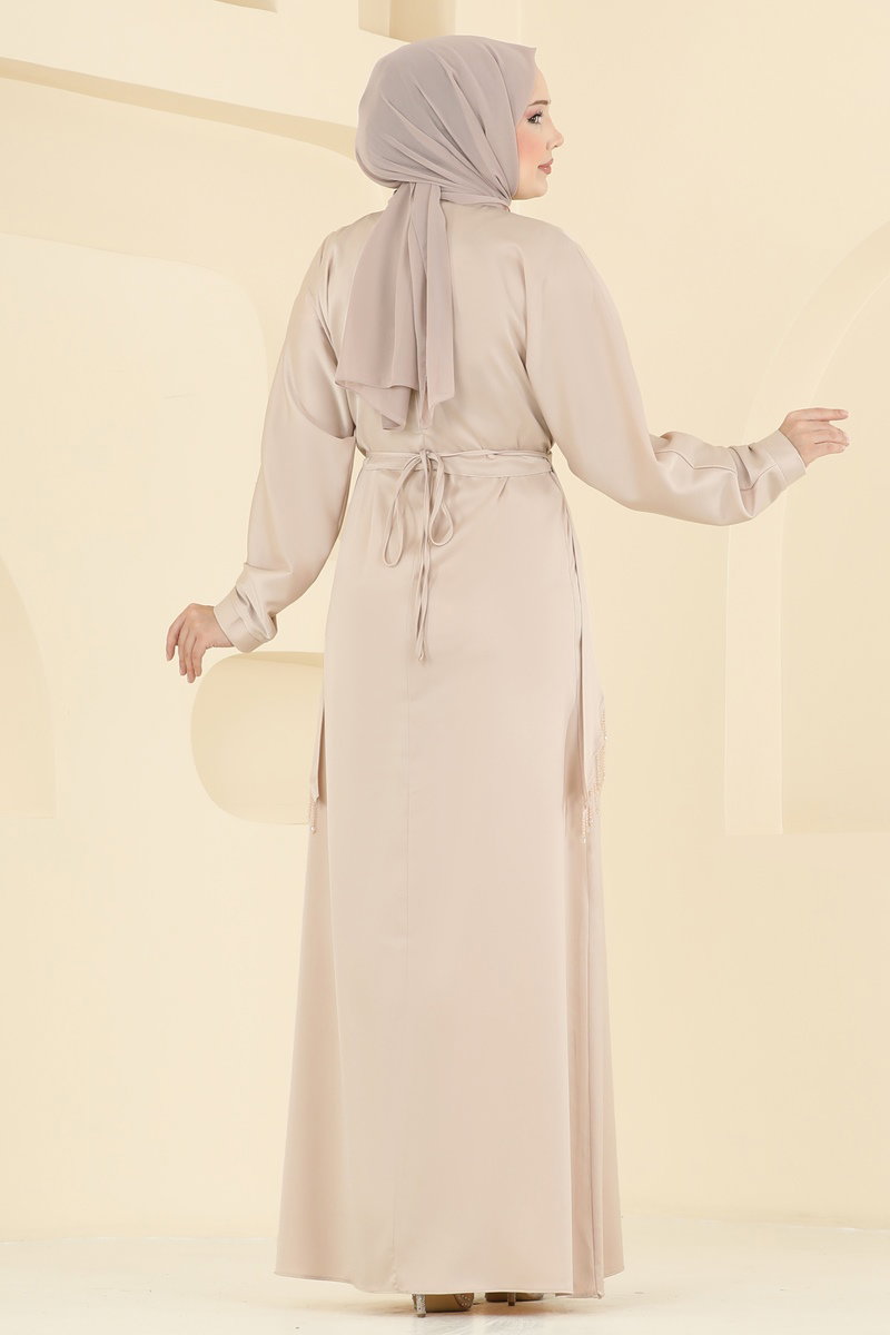 Kumaş Bilgisi: Yüksek kaliteli saten malzemeden üretilmiştir. Her mevsim tercih edilebilir.