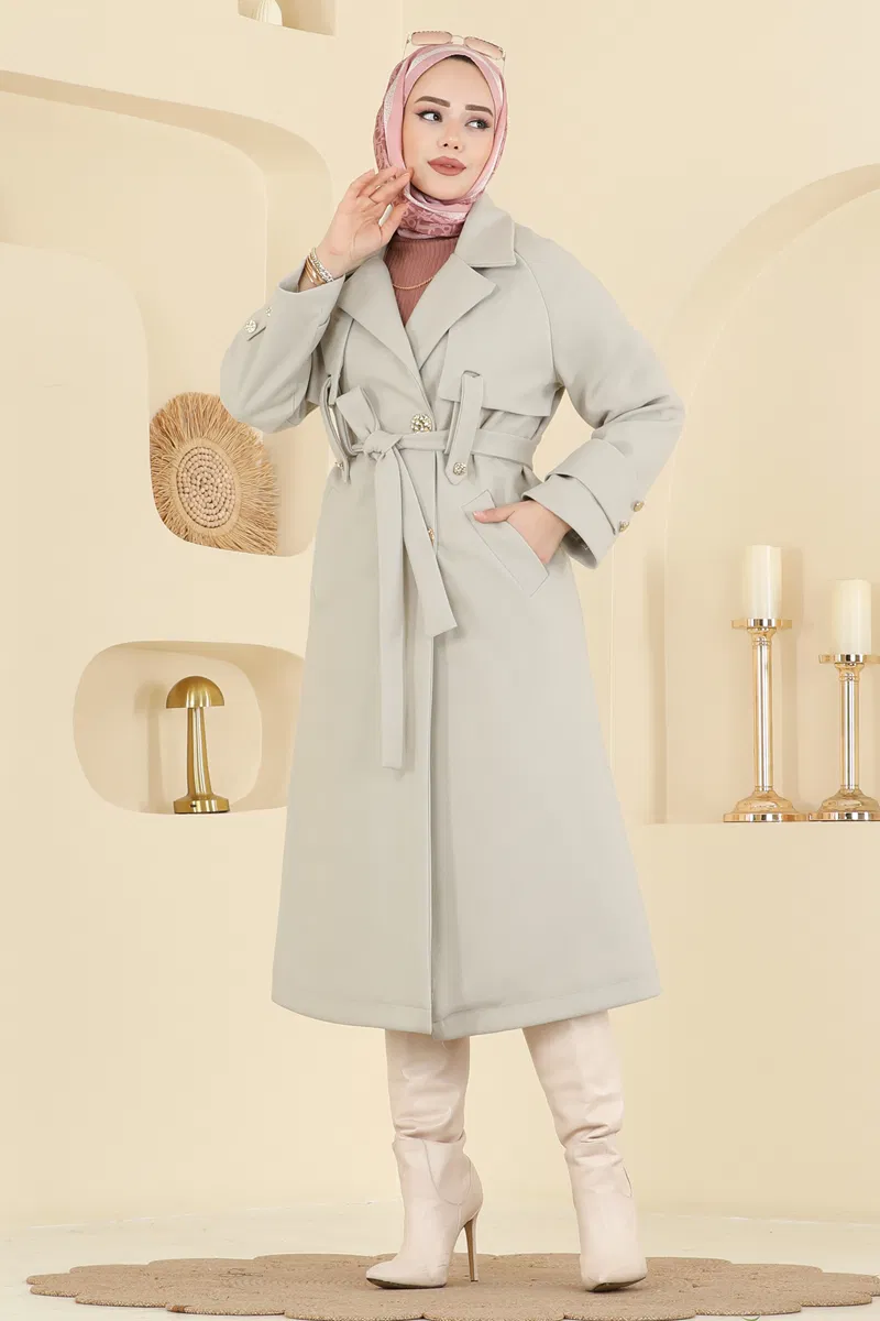 Şık Düğmeli Kaşe Kaban 6264BSK463-MS Taş