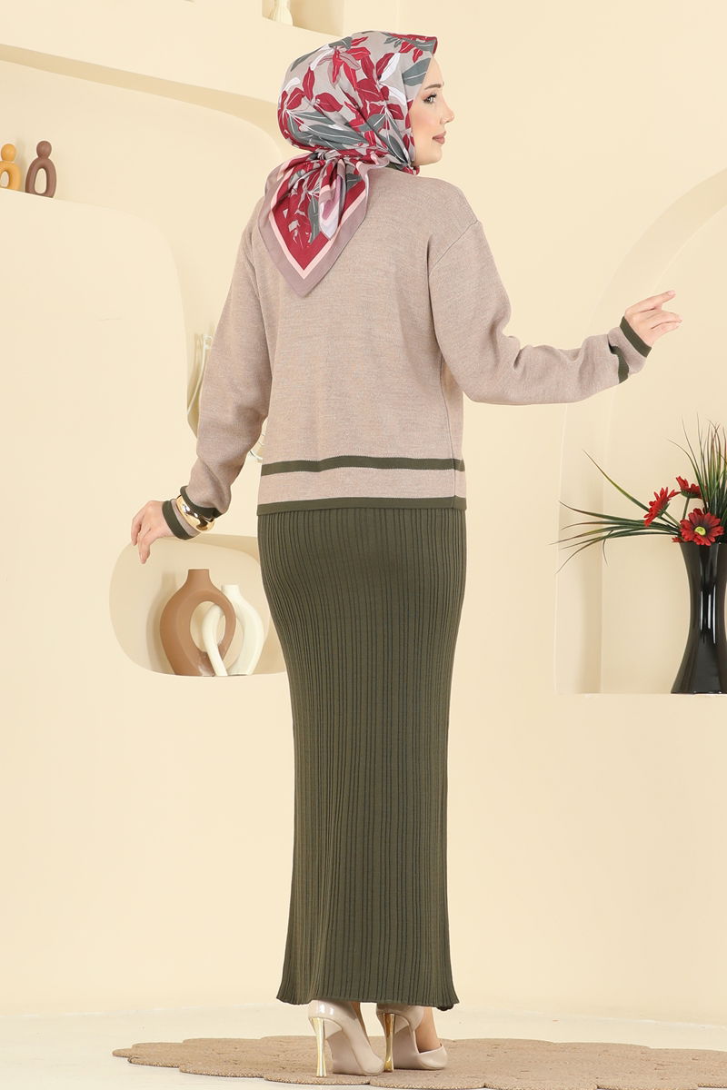 Şık Hırkalı Triko Takım 1355MT581-MS Haki&Vizyon