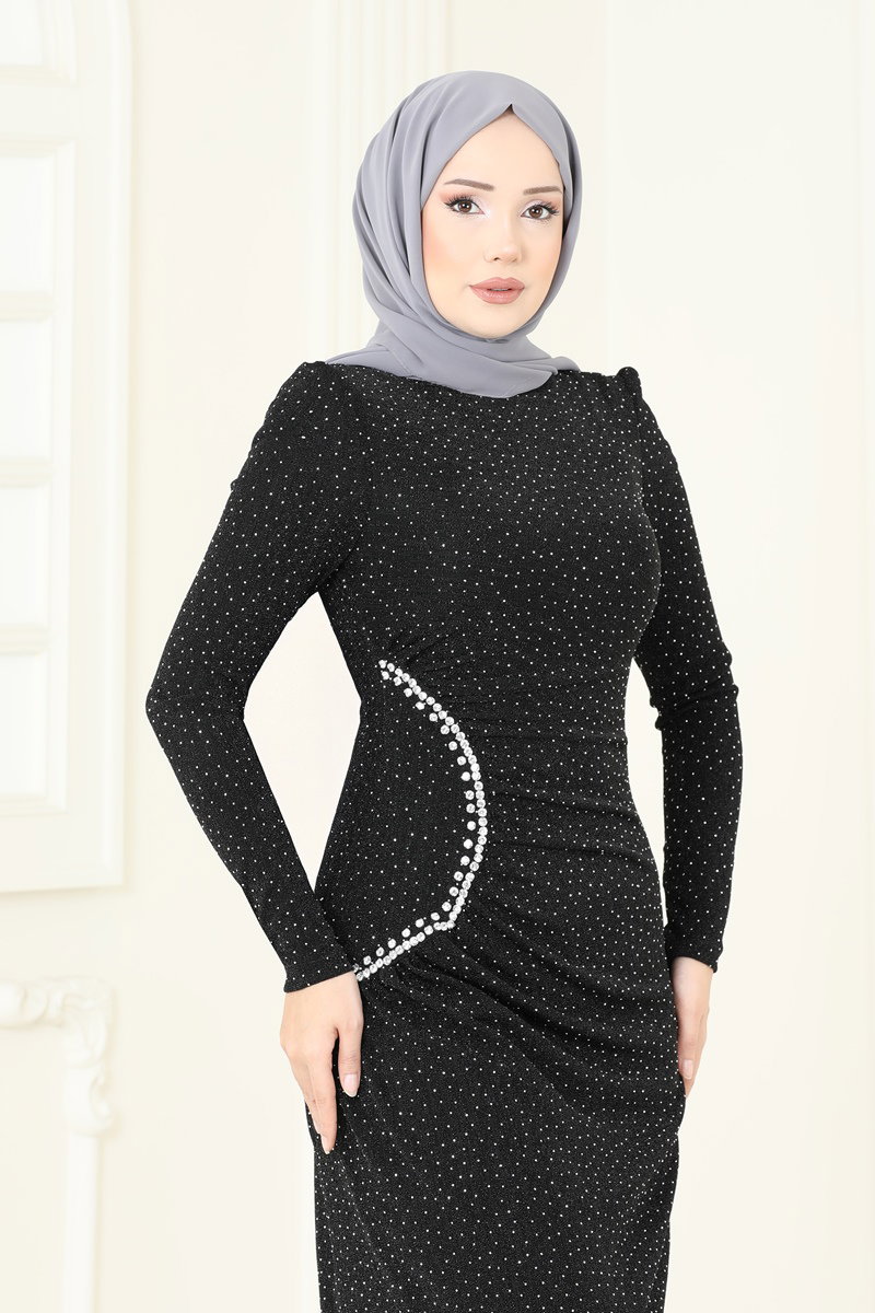 Parıltılı Detaylarla Zenginleştirilmiş Siyah Abiye