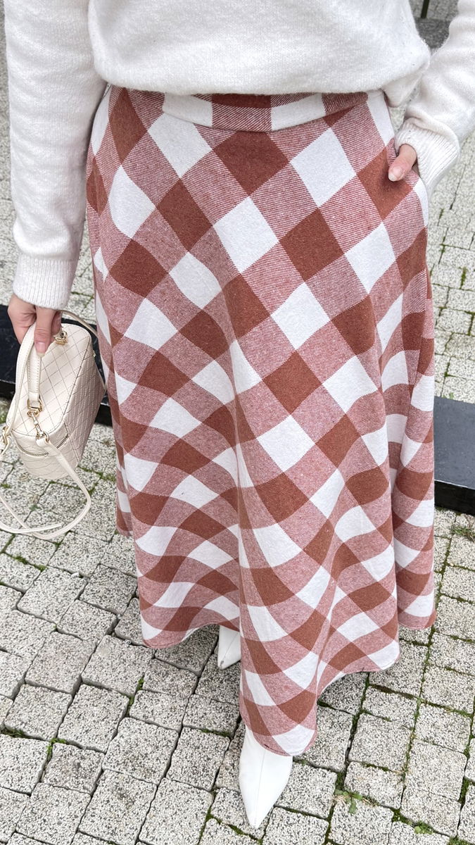 The Plaid Skirt with Side Pockets is specially designed for modest wear. It can be comfortably worn during the autumn and winter months. Washable at 30 degrees on a gentle cycle. Its plaid fabric adds elegance, while its unlined structure ensures light and comfortable wear. The zipper on the side makes it easy to wear, and the zipper at the waistband along with a side pocket offers practicality. The model showcased is size 38, perfect for crafting stylish looks.