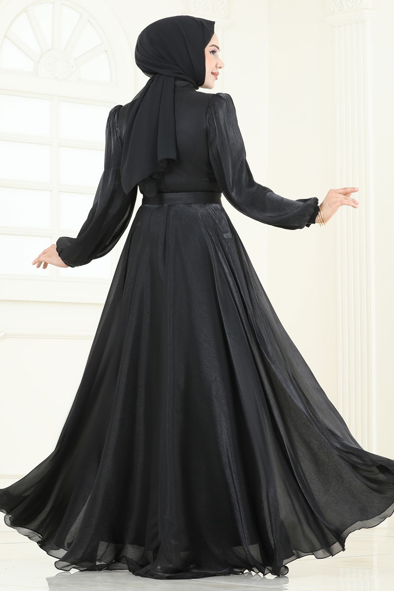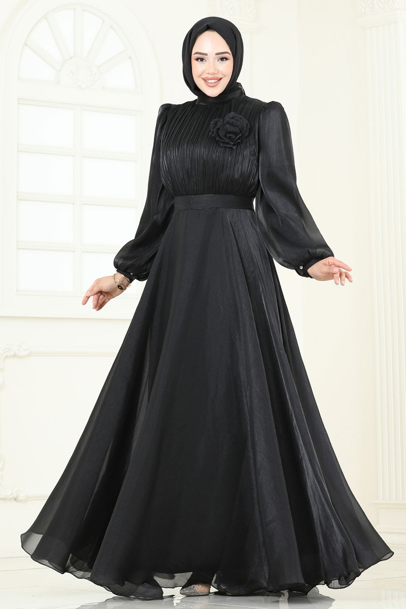 SUAL Broş Ayrıntılı Janjan Abiye - Siyah