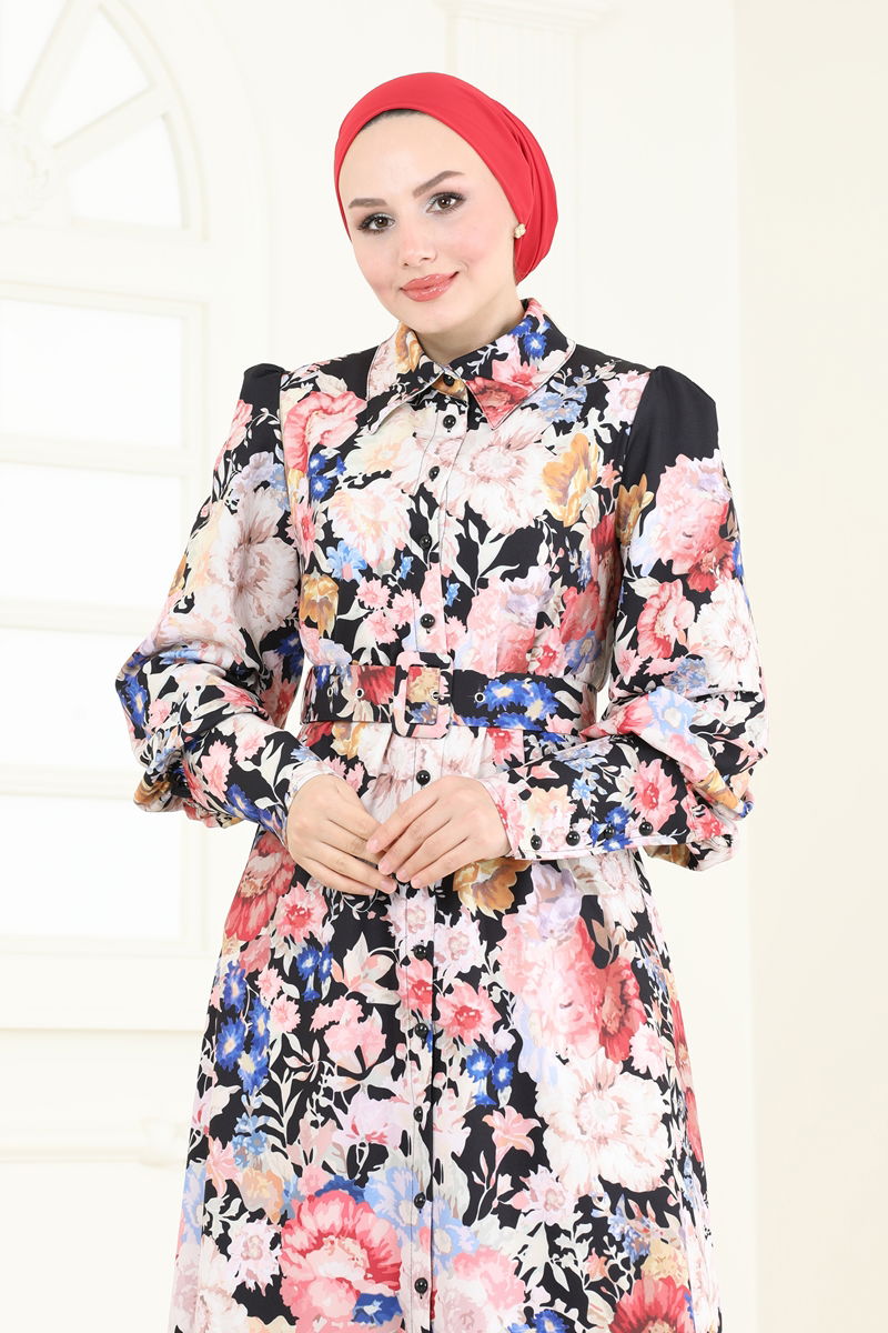 Ürün Detayları: Bu ürün yeni sezon tesettür giyim koleksiyonunun bir parçasıdır. Model gömlek yaka tasarımlıdır. Elbise ön kısımdan düğmeli yapıdadır. Astar içermemektedir. Kemer, elbiseyle birlikte gelir ve çıkarılabilir. Kol uçlarındaki düğmeler işleve sahiptir.Renk sapmaları çekim koşulları nedeniyle meydana gelebilir.