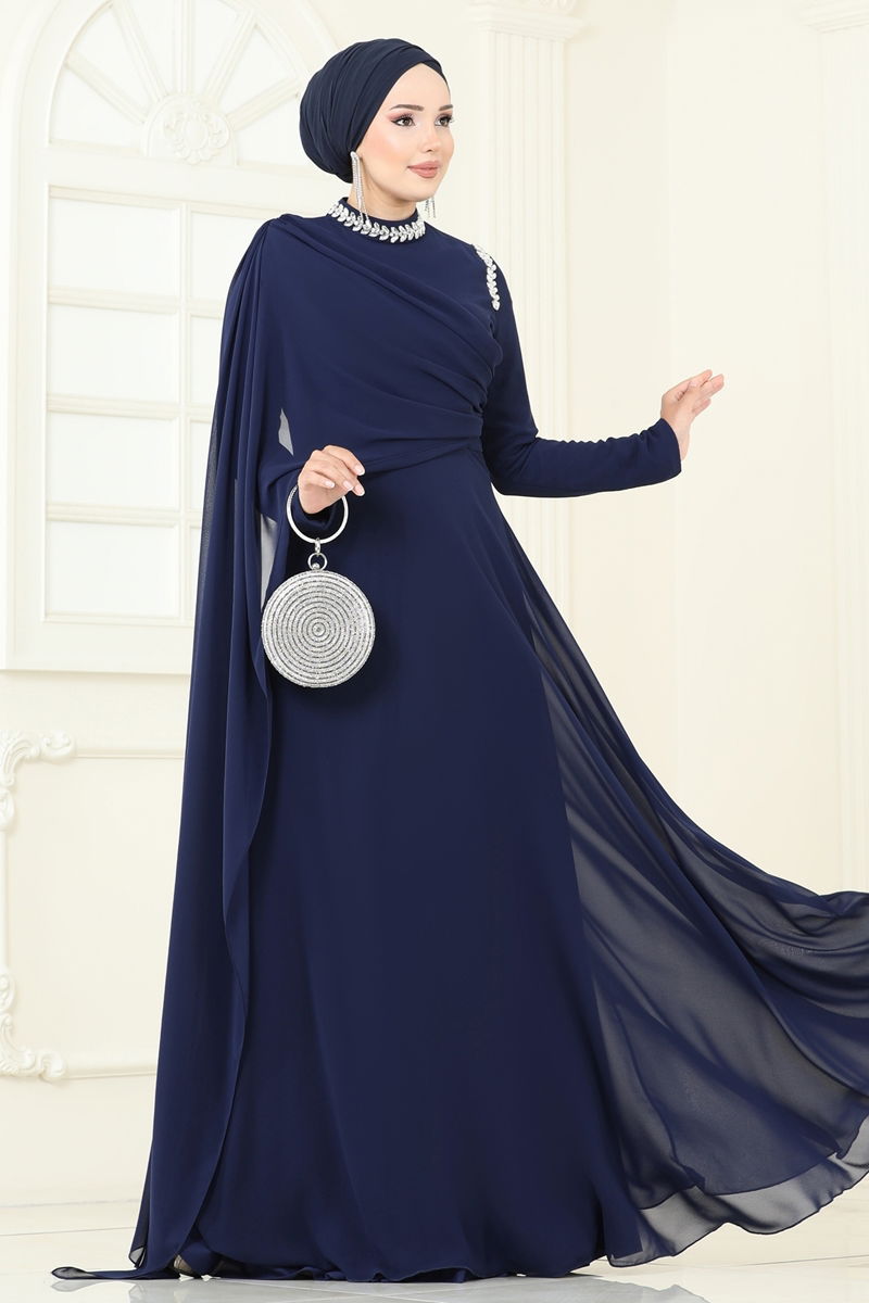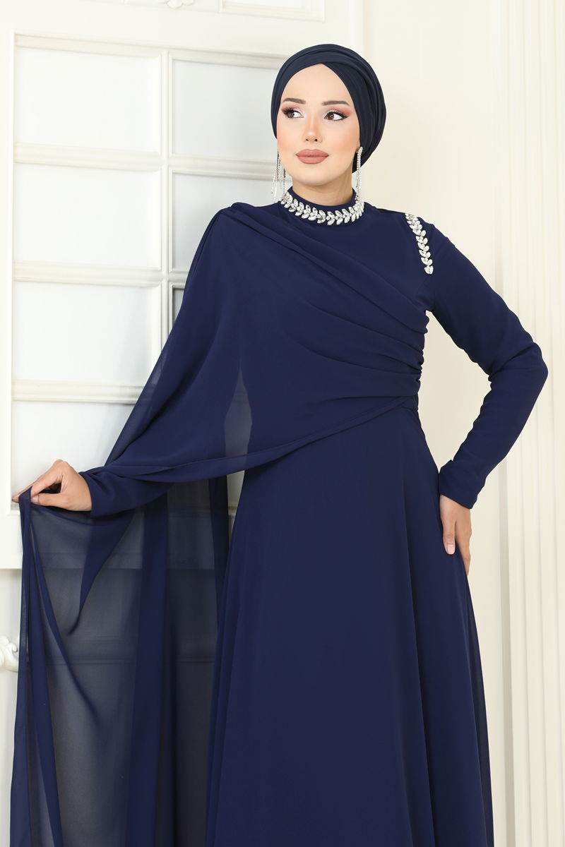 SUAL Pelerinli Taşlı Abiye Laci
