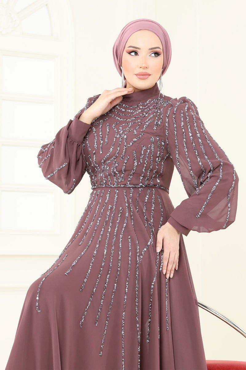 SUAL Taş Detaylı Abiye 4992D170-MS Koyu Gül Kurusu