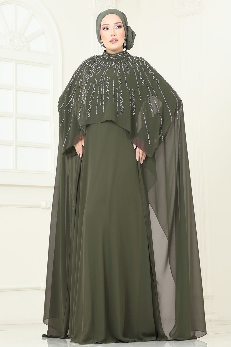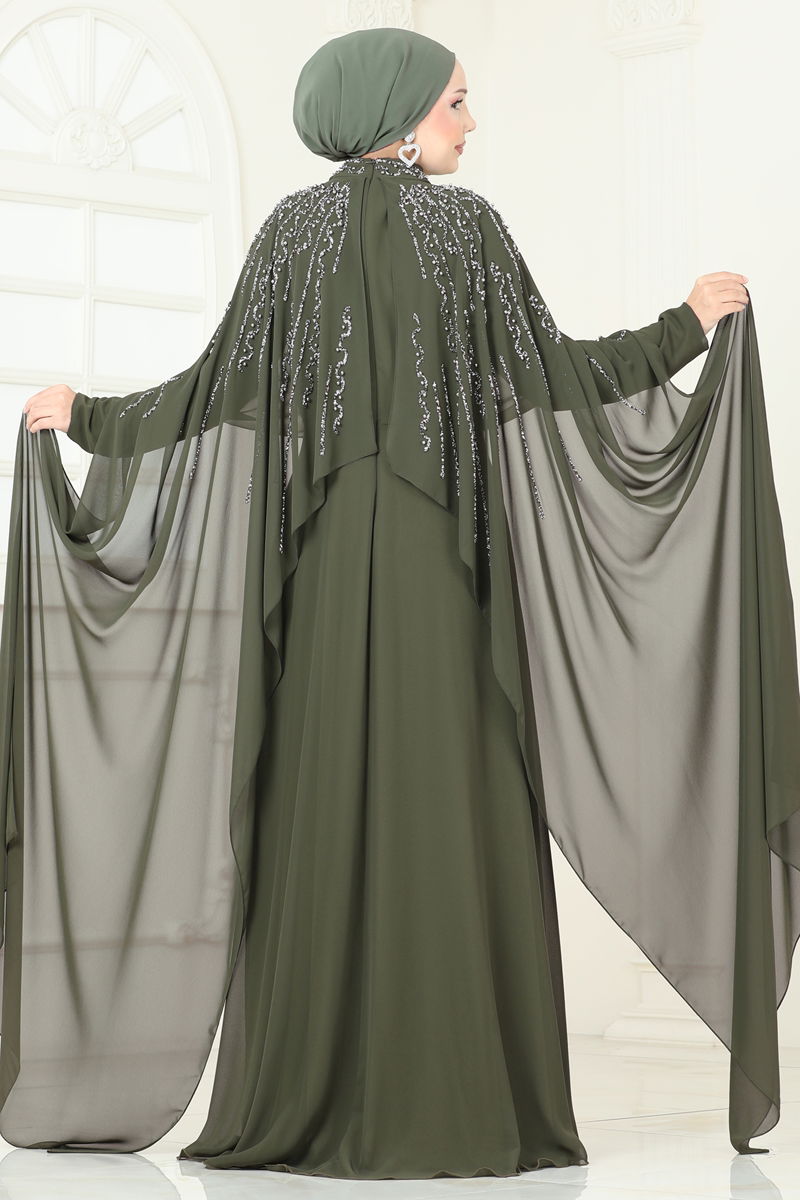 SUAL Taşlı Pelerin Detaylı Abiye 6295LPN858-MS Haki