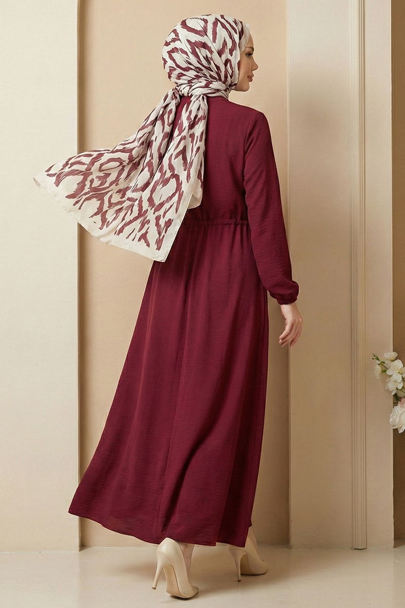 Şık ve modern bir görünüm sunan Bordo Aerobin Kumaşlı Taşlı Elbise, dört mevsim konforunuzu düşünerek tasarlandı. Aerobin kumaş özelliğiyle gün boyu rahatlık sağlar ve pratik hakim yaka ile düğmeli ön tasarımı kolay kullanım imkanı sunar. Astarsız yapısı ve elastik kolları ile tam hareket serbestisi sağlayan bu elbise, beldeki bağcıklar ile şıklığı tamamlar. Hassas yıkama önerisiyle uzun süreli kullanım için idealdir.