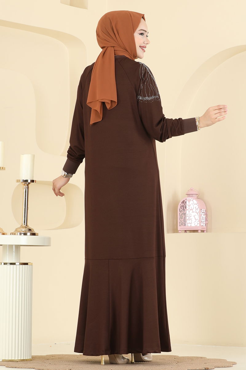 Taş Detaylı Kristal Elbise 3440UZ662-MS Kahve
