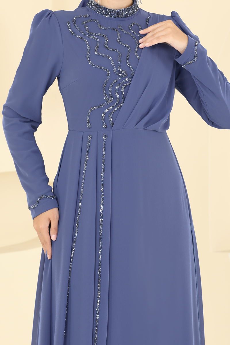 Mavi Şifon Abiye ile Taş Detayları