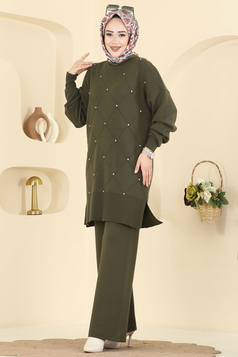 Taş Detaylı Triko Takım 1209MT581-MS Haki