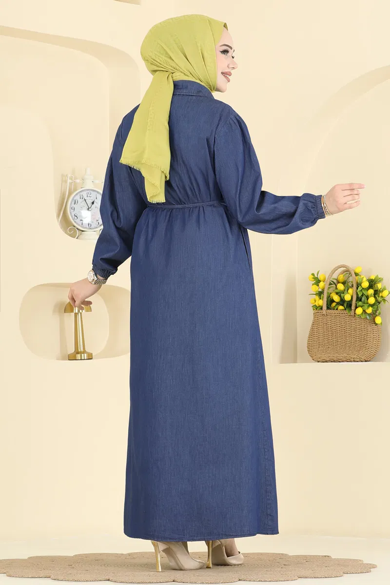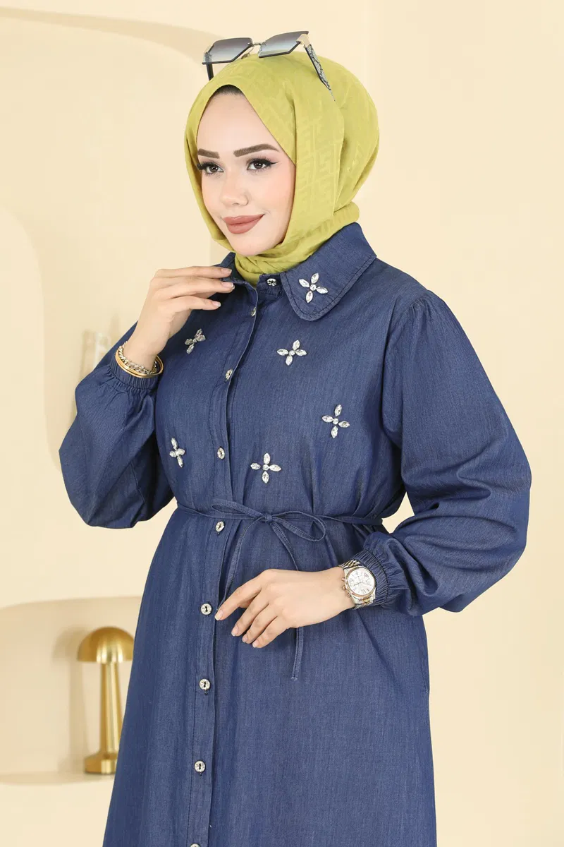 Taş İşlemeli Kot Elbise 1109MSA980-MS Koyu Kot