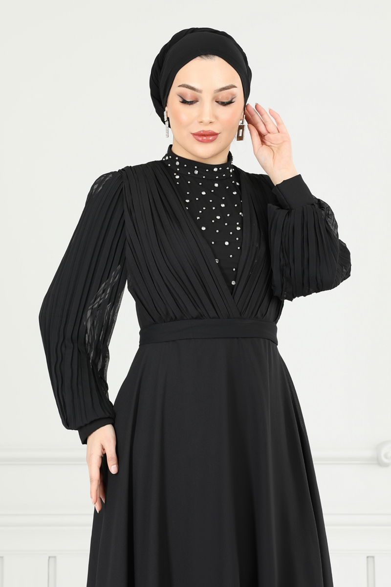 Taşlı Şifon Abiye 0404ALG474-MS Siyah