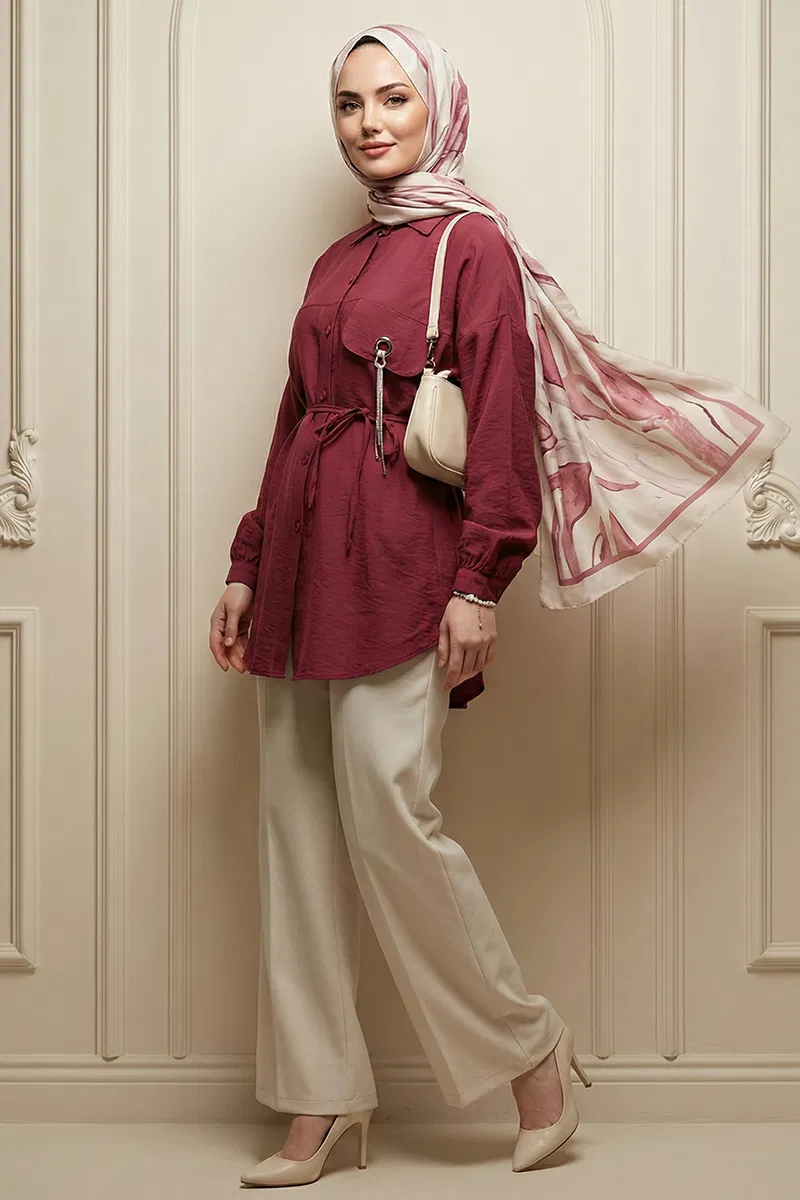 Gömlek Detayıyla Dikkat Çeken Bordo Renkli Ürün