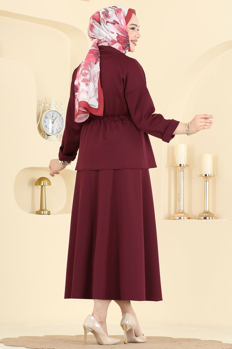 Bordo renkli, Scuba kumaşından olan bu Tek Düğmeli Takım, tesettür modasında elegan bir stil sunar. Yılın dört mevsimi boyunca keyifle giyebileceğiniz bu ürün, 30 derecede hassas yıkama imkanıyla kullanım kolaylığı sağlar. Scuba kumaşı formunu koruyarak uzun ömürlü kullanım sunar. Modern V yaka tasarımına sahip olan takım, astarsız yapısıyla hafif ve konforludur. Elastik bel tasarımı sayesinde rahat bir oturum sunan eteğiyle idealdir. Stilinizi S bedenlik örnekle tamamlayabilirsiniz.CEKET ÖLÇÜLERİ (CM)Beden Göğüs Uzunluk L 104 62 M 100 62 S 96 62 XL 108 62 ETEK ÖLÇÜLERİ (CM)Beden Uzunluk L 87 M 87 S 87 XL 87 Ağırlık(Kg):0.88 -