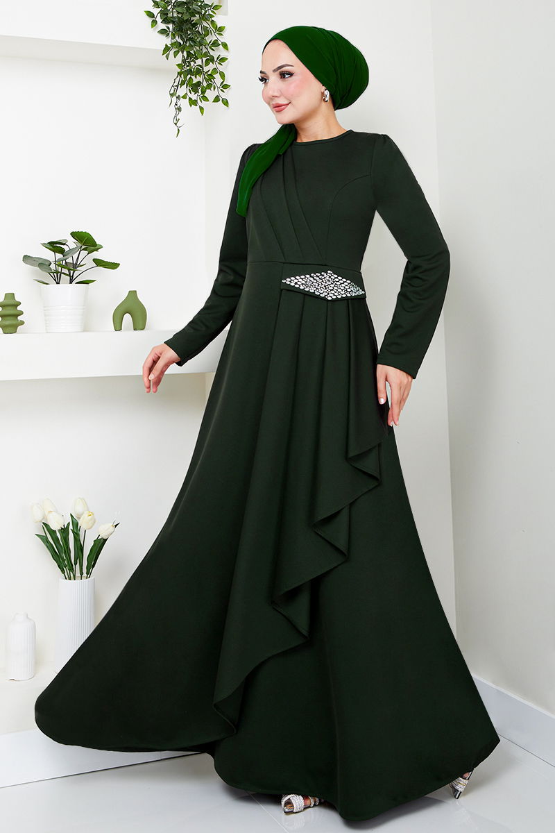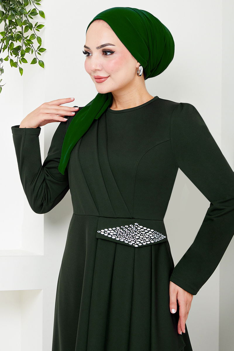 The Stone Detailed Hijab Dress 5022SL890 Emerald