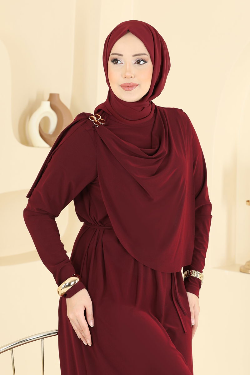 Toka Detaylı Sandy Elbise 2455ANT466-MS Bordo