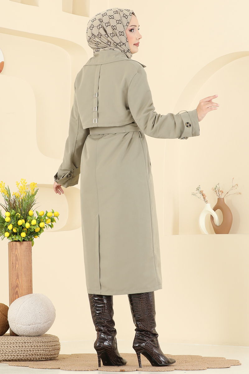 Product Feature : It is a new season hijab fashion product. The product has a Double-breasted collar. The product has From the front buttons. It is lined. Belt included, optional not available. Pocket available. There may be a tonal difference in the product due to concept photo shoots.