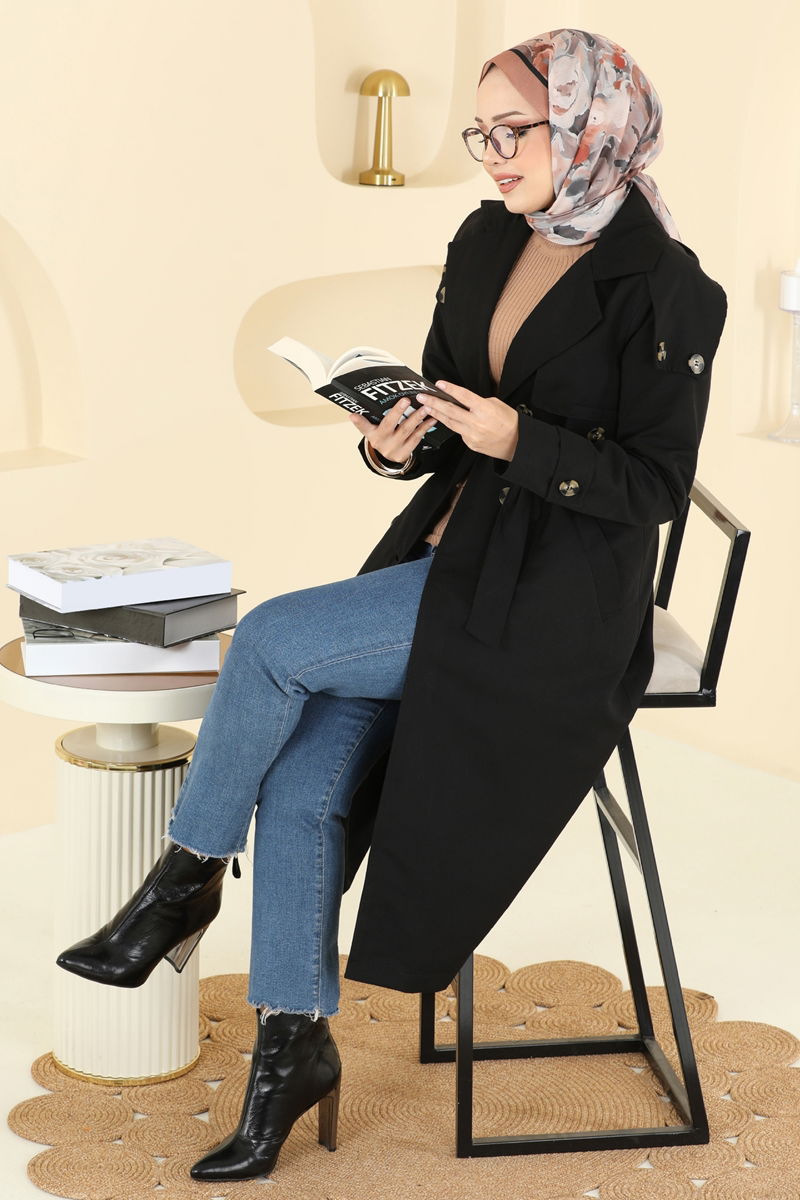 المنتج لديه ياقة مفتوحة. المنتج به أزرار نصف أمامي. مبطنة. الحزام متضمن، ،يمكن استخدامها حسب الرغبة يحتوي المنتج على جيب. أزرار الأكمام إكسسوارات. قد يكون هناك اختلاف في الدرجة اللونية في المنتج بسبب التقاط الصور الفوتوغرافية.