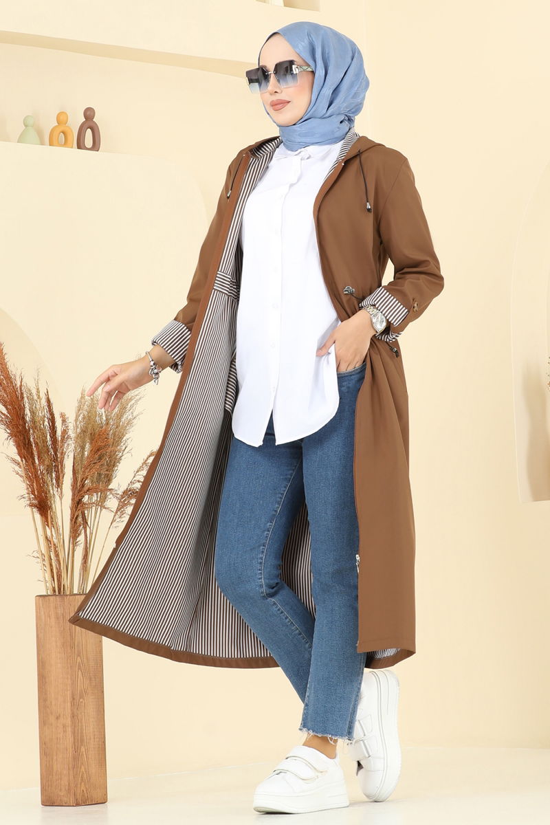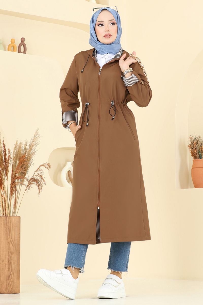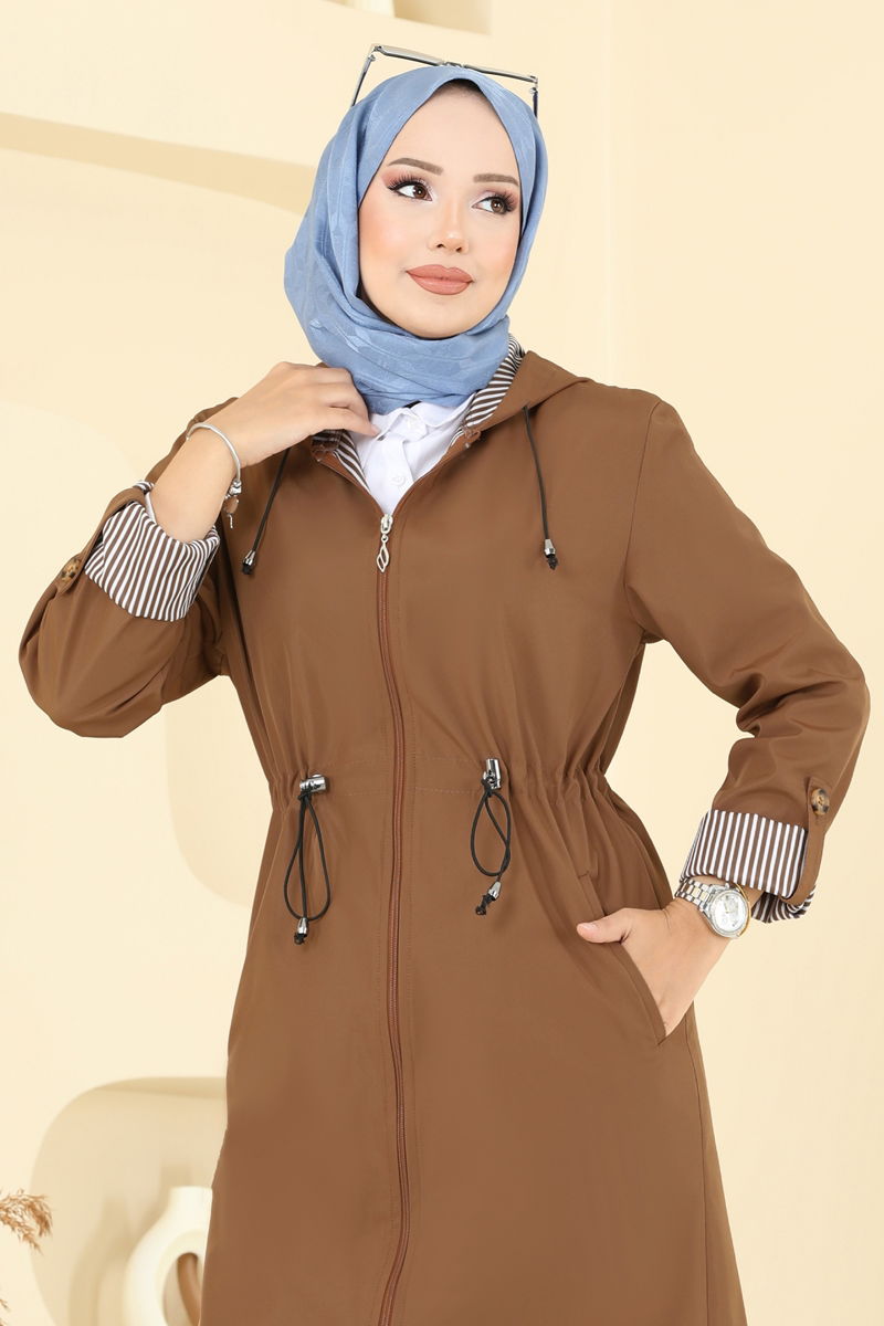 Product Feature : It is a new season hijab fashion product. The product has a Hooded collar. Unlined. The product has a zipper at the From the front part. The hood is sewn to the product. Pocket available. There may be a tonal difference in the product due to concept photo shoots.