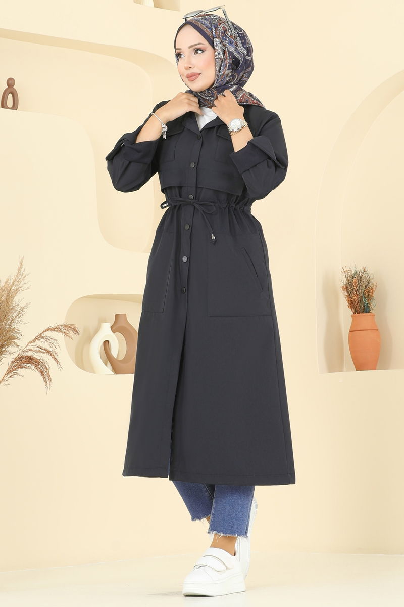 يتميز بخصر ذو أربطة. المنتج لديه ياقة نصف بيضوية. المنتج به أزرار من الأمام. غير مبطنة. الجيب متاح. قد يكون هناك اختلاف في الدرجة اللونية في المنتج بسبب التقاط الصور الفوتوغرافية.