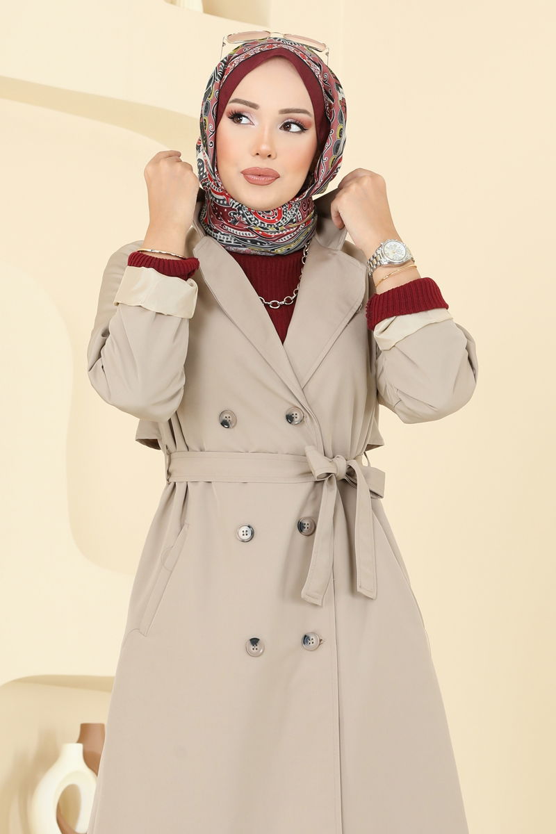 Product Feature : It is a new season hijab fashion product. The product has a Double-breasted collar. The product has From the front buttons. The slash is not active.. It is lined. Belt included, optional not available. Pocket available. There may be a tonal difference in the product due to concept photo shoots.