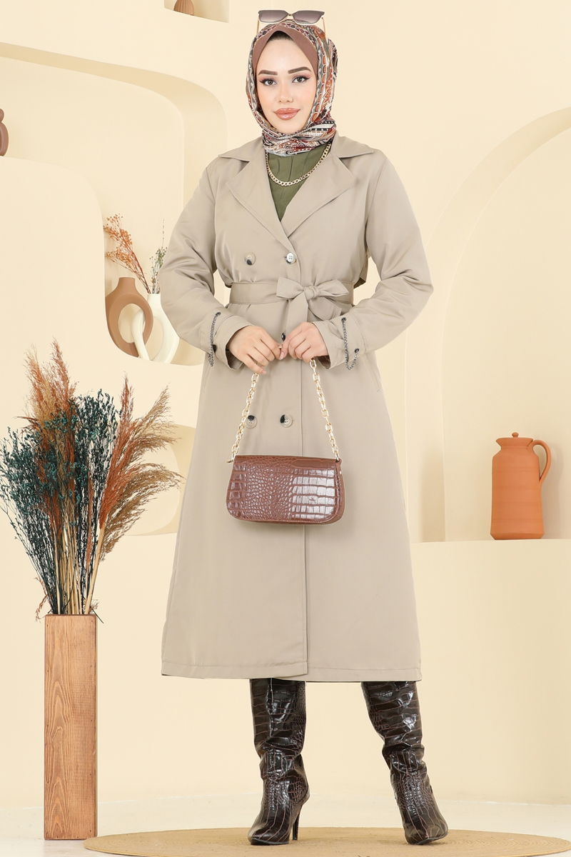 المنتج لديه ياقة مفتوحة. المنتج به أزرار نصف أمامي. مبطنة. الحزام متضمن، ،يمكن استخدامها حسب الرغبة يحتوي المنتج على جيب. قد يكون هناك اختلاف في الدرجة اللونية في المنتج بسبب التقاط الصور الفوتوغرافية.