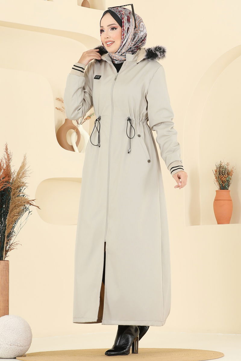 The Fur Detailed Arm Badge TRENCHCOAT is specially designed for those who love modest fashion, providing elegance during the fall and winter seasons. This coat, which should be cleaned only by dry cleaning, is made from bonded and fur fabric and has a fur-lined interior. The product is zippered in the front and comes with a detachable hood according to preference. It also features pockets for practical use. The product displayed on the model is size 38.