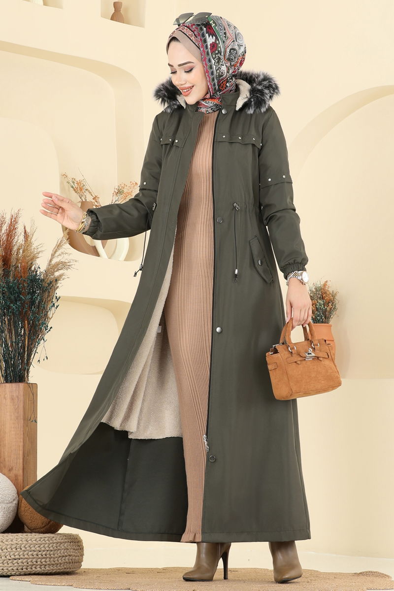 يتميز بخصر ذو أربطة. توجد أزرار متوفرة من الأمام. القبعة قابلة للإزالة ويمكن استخدامها حسب الرغبة. المنتج لديه ياقة مع قبعة. البطانة مبطنة بالفرو.. المنتج به سحاب في جزء من الأمام. التفاصيل الحجرية محفورة. تم خياطة القبعة مع الفرو الجيب متاح. السوار مطاطي. قد يكون هناك اختلاف في الدرجة اللونية في المنتج بسبب التقاط الصور الفوتوغرافية.