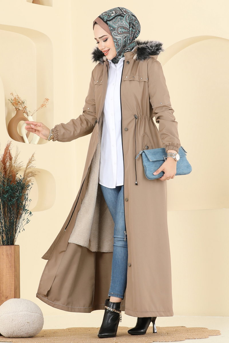 يتميز بخصر ذو أربطة. توجد أزرار متوفرة من الأمام. القبعة قابلة للإزالة ويمكن استخدامها حسب الرغبة. المنتج لديه ياقة مع قبعة. البطانة مبطنة بالفرو.. المنتج به سحاب في جزء من الأمام. التفاصيل الحجرية محفورة. تم خياطة القبعة مع الفرو الجيب متاح. السوار مطاطي. قد يكون هناك اختلاف في الدرجة اللونية في المنتج بسبب التقاط الصور الفوتوغرافية.