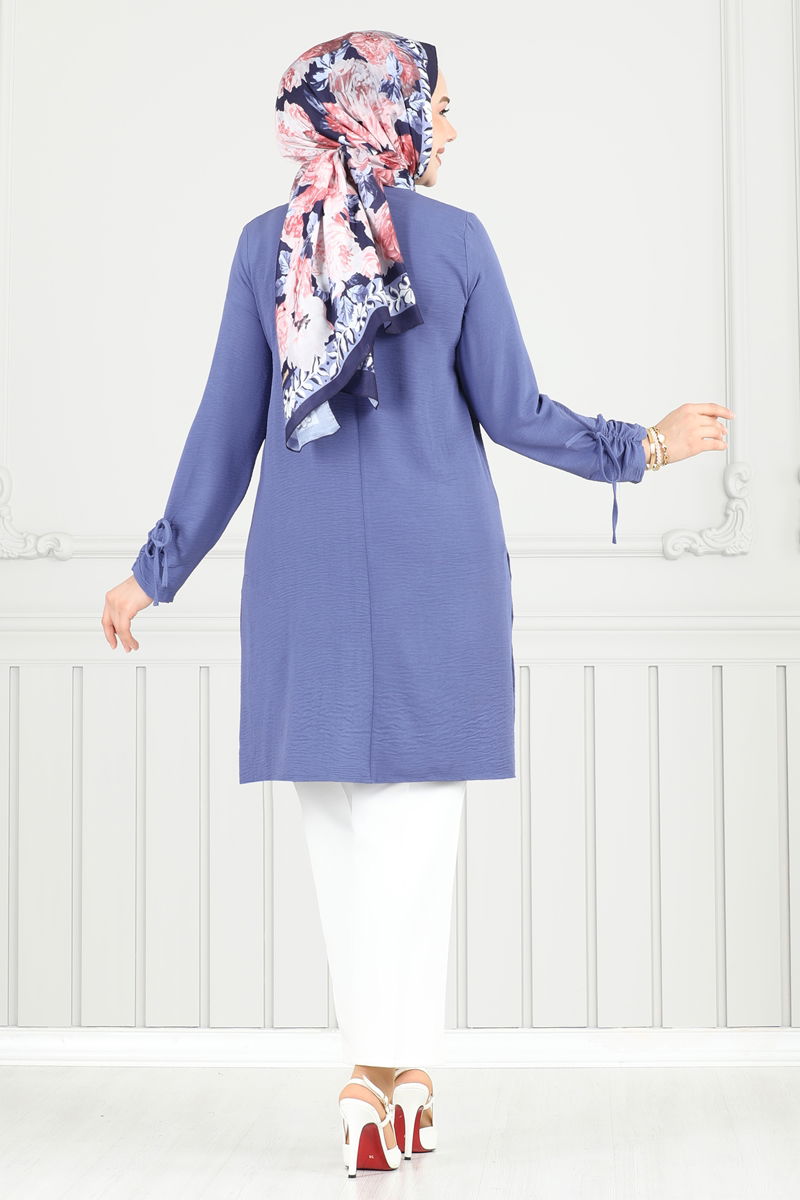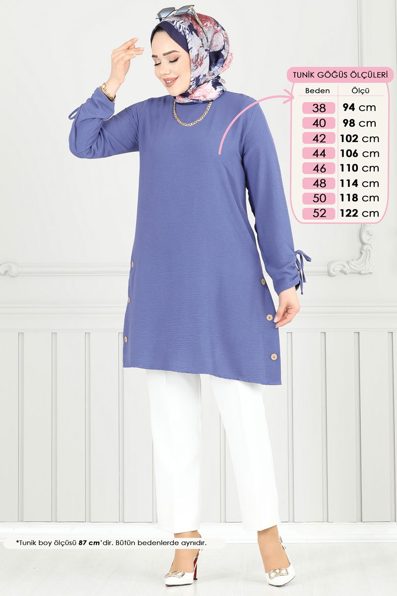 Elegant and functional, the Slit Buttoned Modest Tunic is a versatile addition to any wardrobe. Made from aerobin fabric, this tunic is lightweight and breathable. It features a crew neck and a button at the back, adding a modern twist to the design. The slit buttons and drawstring details enhance its elegance, while its lining-free structure ensures comfort. Suitable for all seasons, this tunic promises a stylish look for any occasion and can be machine washed gently at 30 degrees.