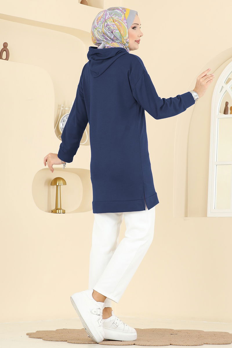 The Hooded Tunic with Patch Detail is an ideal modest wear piece suitable for all seasons. It can be delicately washed at 30 degrees and is made from dual-thread fabric. The tunic features a distinctive hood with a drawstring and a sewn patch detail that adds to its elegance. It's unlined design and comfortable fit make it perfect for daily wear.