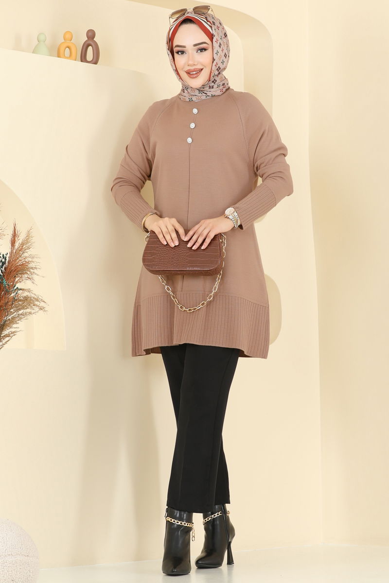 The Button-Detailed Knit Tunic is an ideal choice for those who prefer modest clothing. Perfect for autumn and winter, this tunic offers both comfort and style with its machine washable at 30 degrees on a gentle cycle feature. It comes with a crew neck and is unlined, presenting a modern look while its decorative buttons add a stylish touch. Made from knit fabric, it keeps you warm and comfortable. Available in standard sizes.