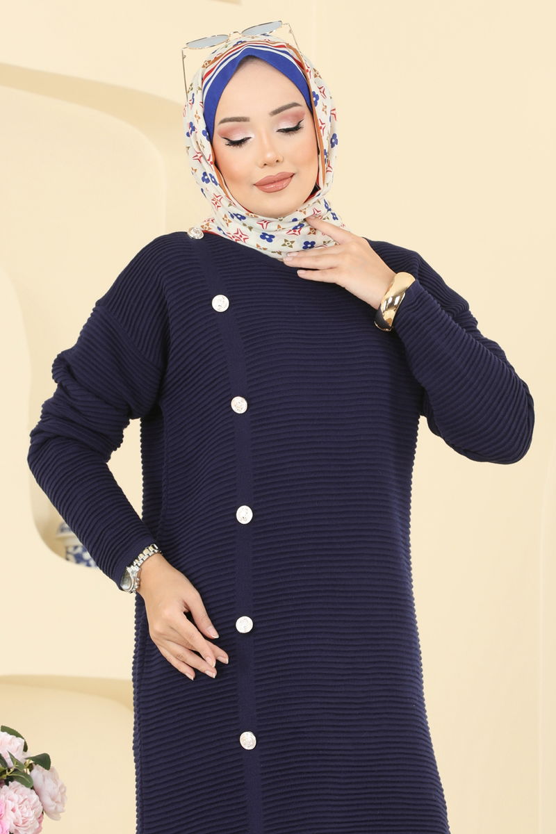 The Accessorized Buttoned Knit Tunic is a modest wear piece perfect for autumn and winter, offering both style and comfort. This garment can be washed gently at 30 degrees and is made from knit fabric. It features a crew neck and is unlined for added comfort. The buttons on the tunic serve as stylish accessories only.
