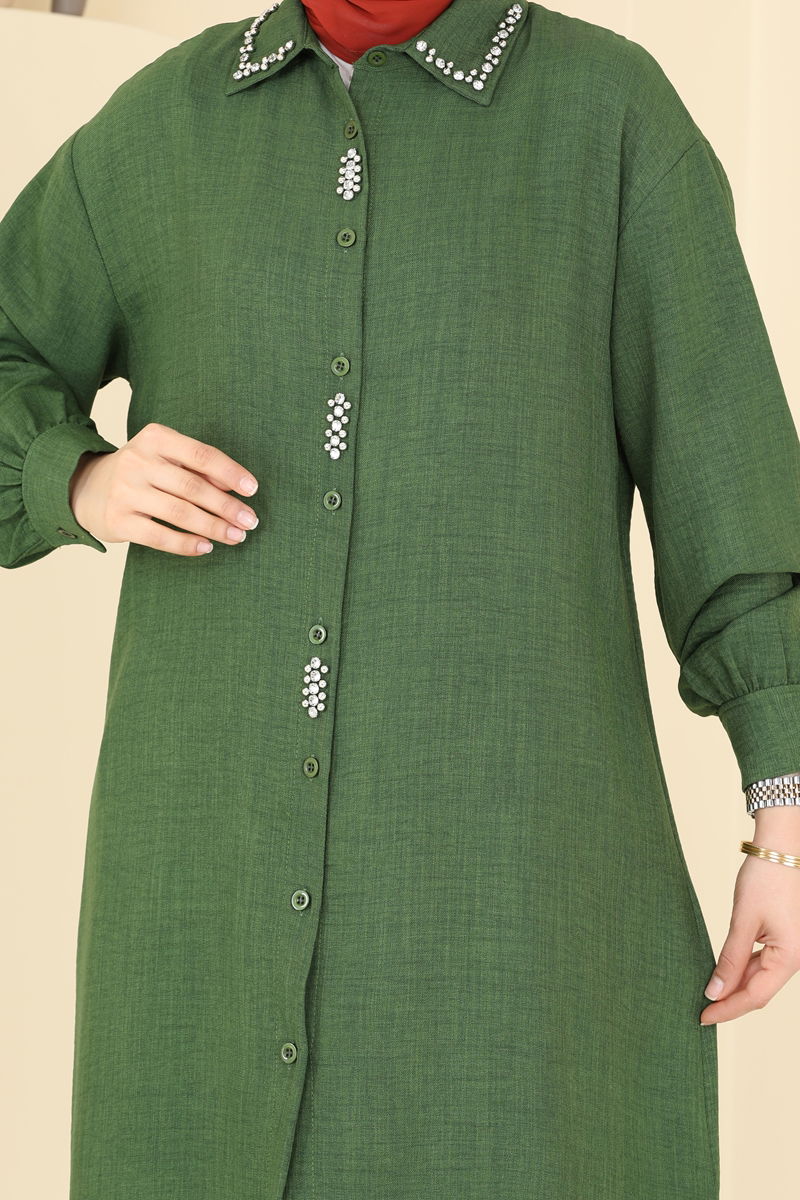 المنتج لديه ياقة القميص. البلوز تحتوي على فتحة. غير مبطنة. التفاصيل الحجرية محفورة. أزرار الكفة نشطة. قد يكون هناك اختلاف في الدرجة اللونية في المنتج بسبب التقاط الصور الفوتوغرافية.