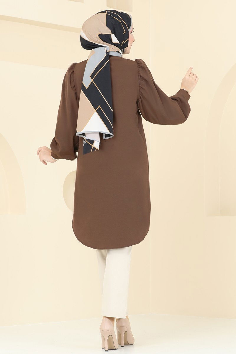 The Balloon Sleeve Hijab Tunic is a modest wear item that can be comfortably used in all seasons. It offers practical use with its machine washable feature at 30 degrees on a gentle cycle. Made from terrycotton fabric, it is durable. Its elegant shirt collar and front-button design ensure you stay stylish in any setting. With active breast pocket and cuff buttons, it promises functional use. The lining-free design offers a light and comfortable experience.