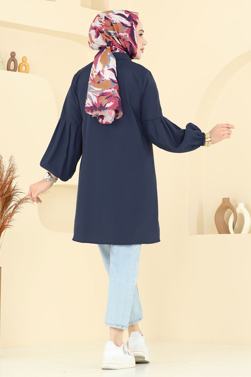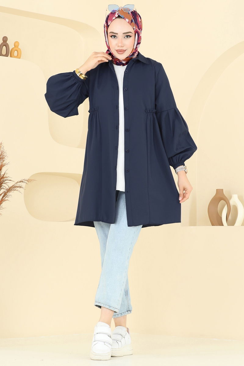 The Shirt Collared Tunic is an ideal modest wear piece that blends design and comfort for all seasons. This product can be washed at 30 degrees on a gentle cycle and is made from terrycotton fabric. Its shirt collar and front button design add elegance while the elastic cuffs enhance ease of use. The unlined structure offers a light and comfortable fit. The product displayed in size 38 gives a perfect idea of the fit.