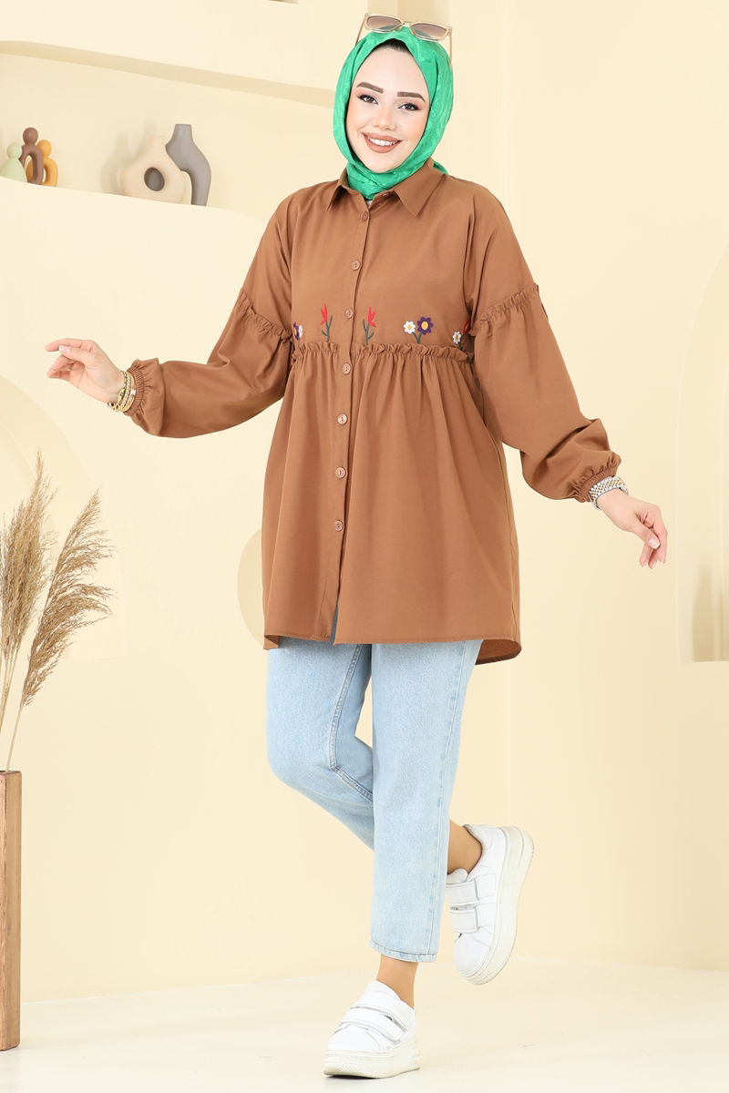 Product Feature : It is a new season hijab fashion product. The product has a Shirt collar. The product has From the front buttons. Unlined. Embroidery details are sewn. The cuff is rubberized. There may be a tonal difference in the product due to concept photo shoots.