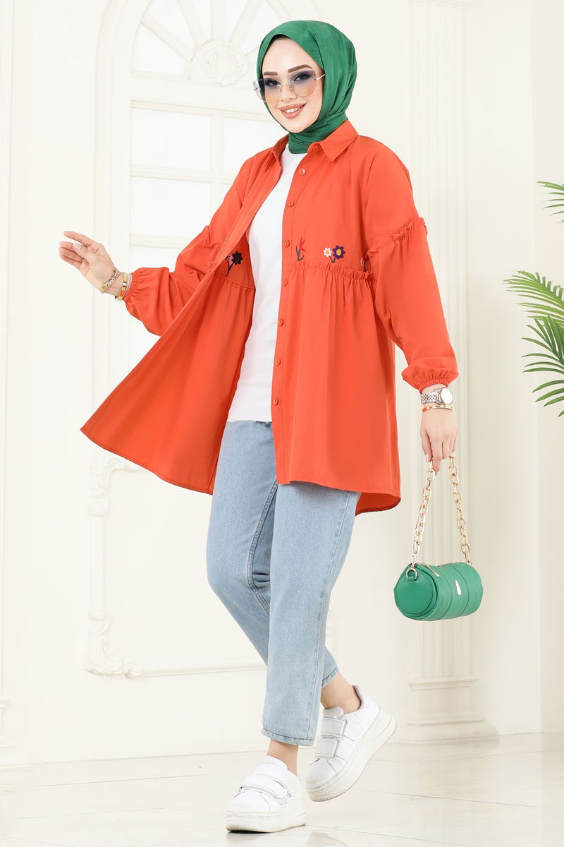 Product Feature : It is a new season hijab fashion product. The product has a Shirt collar. The product has From the front buttons. Unlined. Embroidery details are sewn. The cuff is rubberized. There may be a tonal difference in the product due to concept photo shoots.