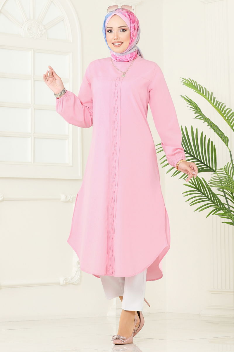 Product Feature : It is a new season hijab fashion product. It has a button that can be used from the back. The product is worn on the head. The product has a Cycling collar. The tunic has a side slash.. Unlined. The cuff is rubberized. There may be a tonal difference in the product due to concept photo shoots.