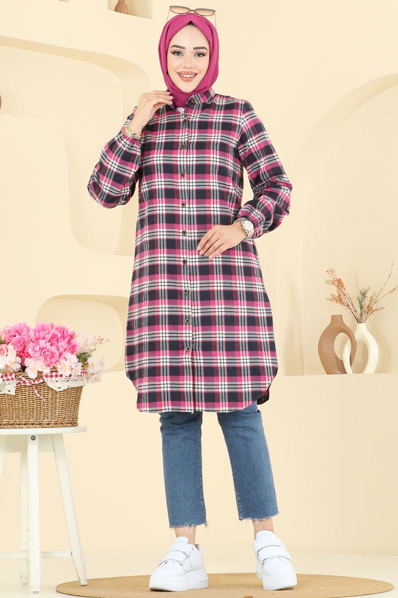 A staple for autumn and winter, the Elastic Cuffed Plaid Tunic combines elegance and warmth in modest fashion. Easy to clean with a gentle wash at 30 degrees, this tunic offers practicality with its button front design. Its lining-free structure and elastic cuffs provide comfort throughout the day. The size 38 on the model promises a stylish fit for all sizes.